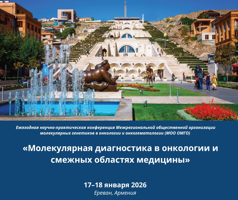 Приглашаем Вас принять участие в ежегодной научно-практической конференции Межрегиональной общественной организации молекулярных генетиков в онкологии и онкогематологии (МОО ОМГО) «Молекулярная диагностика в онкологии и смежных областях медицины», которая состоится 17-18 января 2026 года в городе Ереван (Армения).